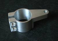 This is the lovely stem steering arm that we had numerical-control machined. We couldn't use it on the EZ because we couldn't get the right steering ratio (chain interference problems with positioning the handlebar steering arm and the steering link).