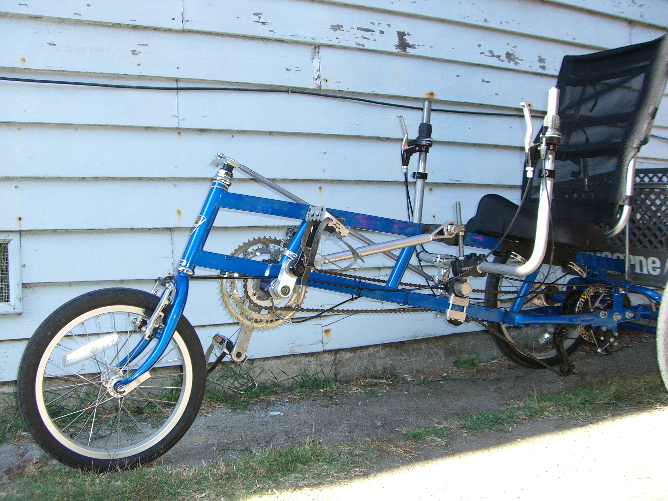 These photos show the arm-power retrofit added to an EZ-3 recumbent tricycle. Arm-power will be the same on the EZ-1 bicycle, since it is the same as the EZ-3 from the seat forward.